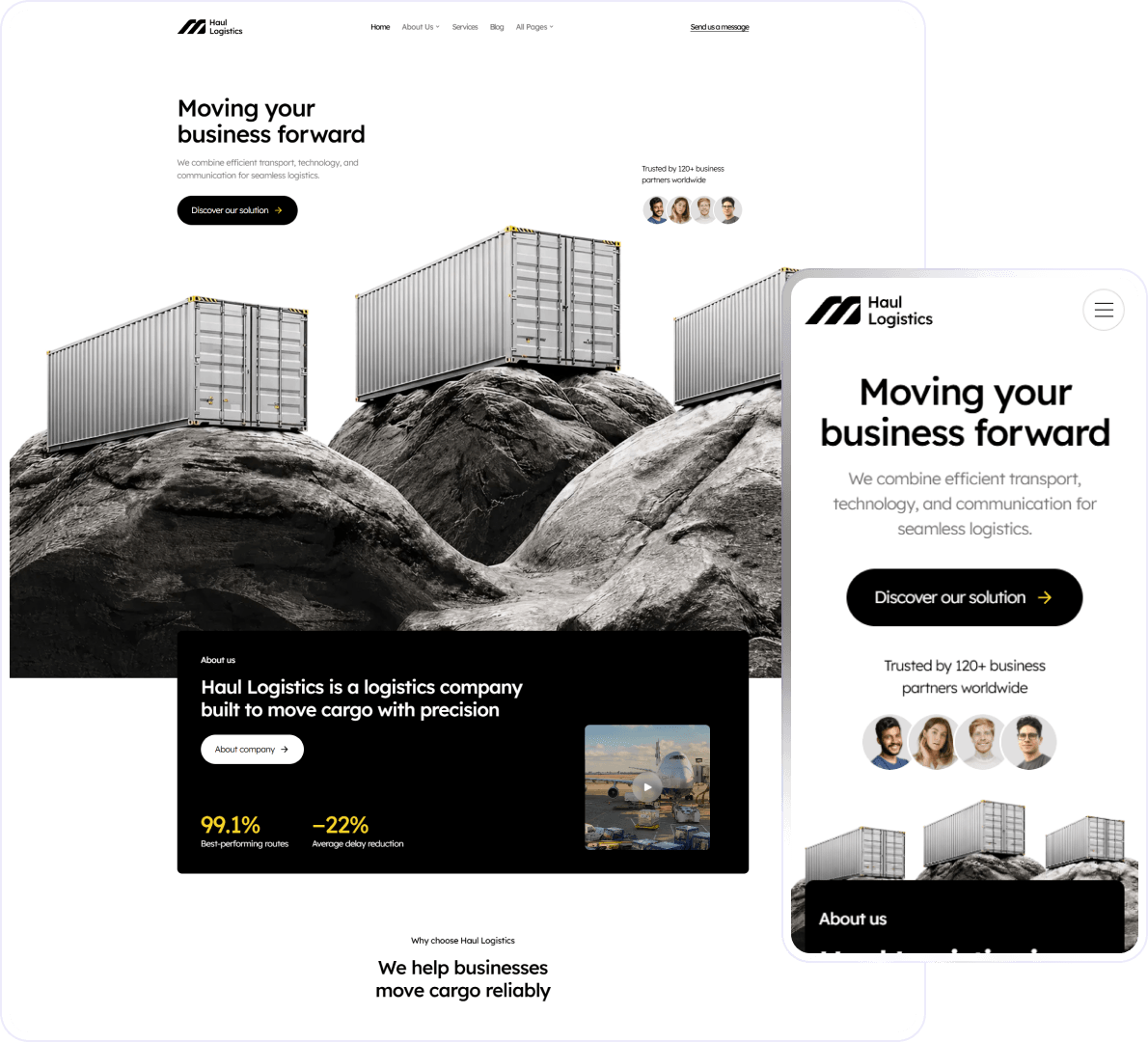 If you’re looking for one of the best logistics templates on the marketplace, you’re in the right place. Haul is a professional Logistics Webflow Template that offers a complete solution for launching modern logistics and transportation websites. It’s a powerful, flexible template designed to meet a wide range of logistics and transportation needs.